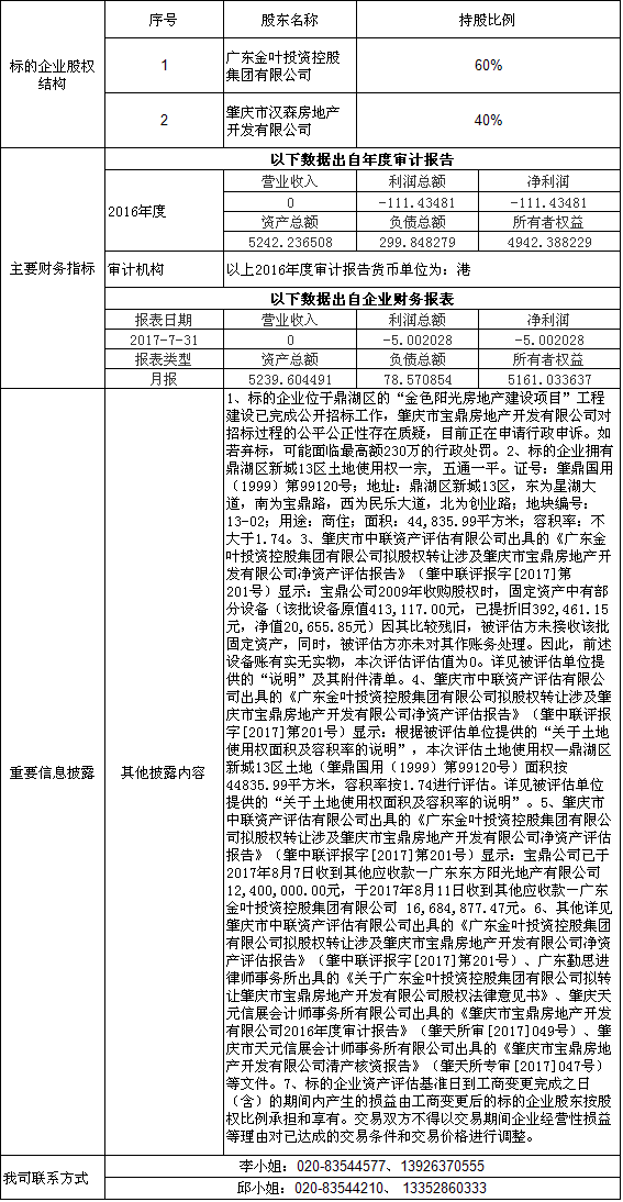 肇庆市宝鼎房地产开发有限公司60%股权