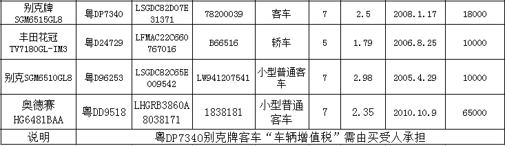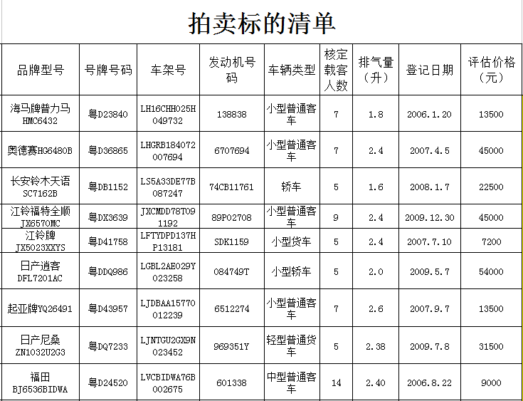 注:以上标的概况信息仅供竞买人参考,标的以实物现状为准。详情请到本公司咨询并前往车展现场查看标的。 广东弘德益利拍卖有限公司汕头分公司