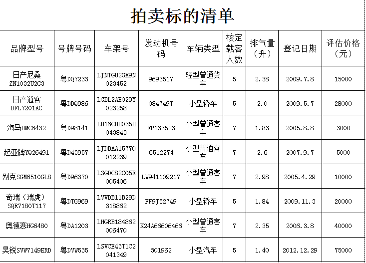 注:以上标的概况信息仅供竞买人参考,标的以实物现状为准。详情请到本公司咨询并前往车展现场查看标的。